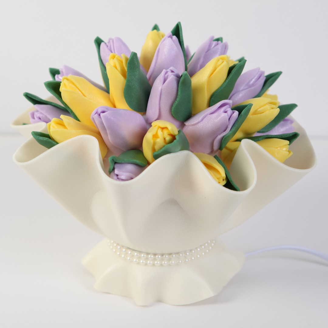Букет тюльпанов Желто-сиреневый Светильник светодиодный со сменной лампойв-к. E27. теплый белый свет 3000K. Плафон D150мм. матовый. Белое основание